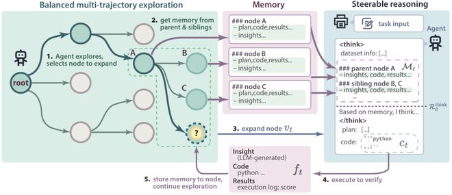受人类专家开发AI的迭代与探索过程启发,研究团队观察到,高效的AI开发需要探索与推理的有机结合。