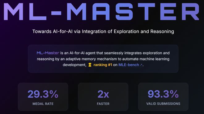 ML-Master通过创新的「探索-推理深度融合」范式,模拟人类专家的认知策略,整合广泛探索与深度推理,显著提升AI4AI性能。